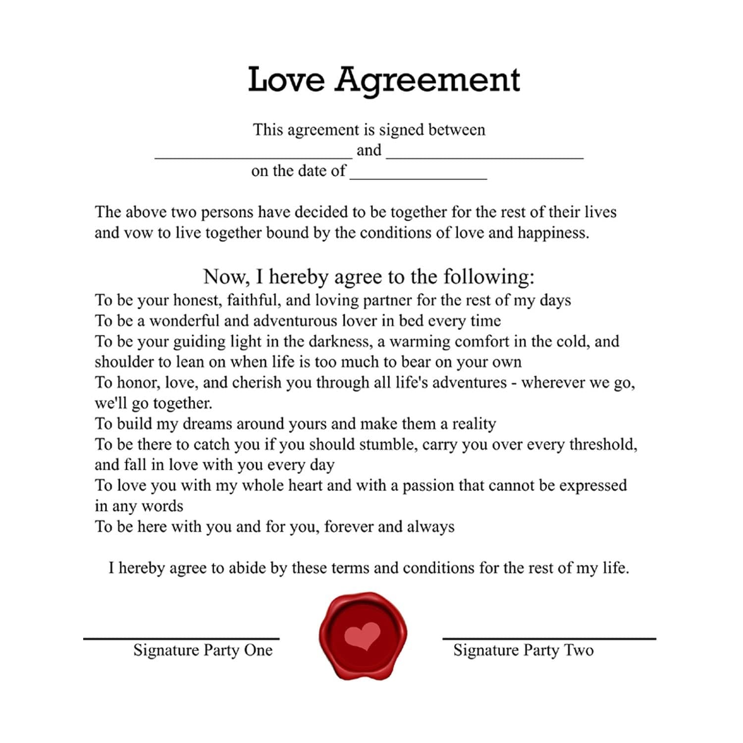 • Package Includes: 1 pre-designed Love Contract Agreement (exact design as shown)